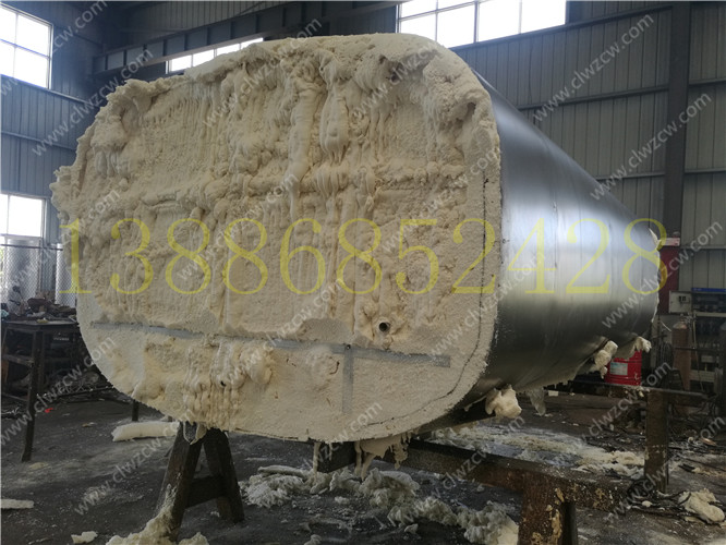 保溫層在制作上主要是在罐體外部先焊接一個(gè)支撐骨架,其厚度一般為100mm,然后再用保溫材料把骨架填充滿。在保溫材料的選擇上我們一般考慮導(dǎo)熱系數(shù)小,耐高溫,質(zhì)量輕,吸聲性能好,絕緣性和化學(xué)穩(wěn)定性好的硬質(zhì)聚氨酷泡沫塑料或巖棉。然后需要對(duì)填充的保溫材料進(jìn)行修正,最后在骨架上撞上蒙板,蒙板一般使用厚度為lmm的冷軋板。