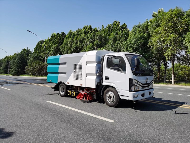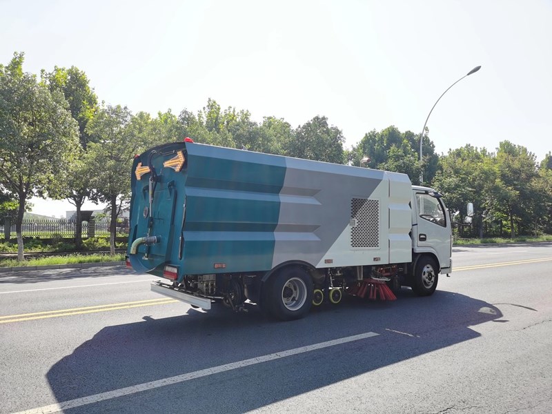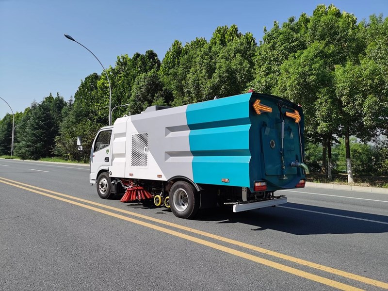該洗掃車采用東風(fēng)多利卡國六二類底盤改裝,加裝副發(fā)動機(jī)、風(fēng)機(jī)、清水箱、垃圾箱、左右立掃、掃盤降塵系統(tǒng)、左右高壓側(cè)噴高、吸盤內(nèi)置高壓主噴桿、氣動系統(tǒng)、液壓系統(tǒng)、專用裝置電控系統(tǒng)和副車架等改裝而成。