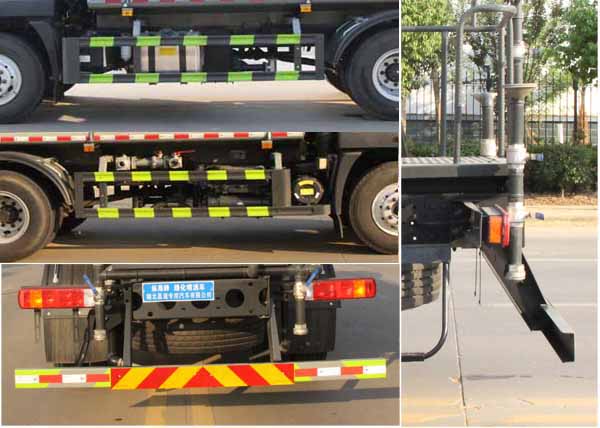 該車主要用于城鄉園林綠化噴灑作業.主要裝置為罐體及噴灑裝置.罐體總容量:10.06立方米,罐體有效容積:9.58立方米,罐體外形尺寸(長×長軸×短軸)(mm):4200×2300×1450.ABS系統型號:ABS-E;生產企業:威伯科汽車控制系統(中國)有限公司.ABS系統型號:ABS-VI.E;生產企業:廣州瑞立科密汽車電子股份有限公司;ABS系統型號:3550D-1010;生產企業:東科克諾爾商用車制動系統(十堰)有限公司.側、后防護材料均為:Q235碳鋼,連接方式均為:螺栓連接,后部防護截面尺寸(mm):120×50,后部防護離地高度(mm):470.僅采用底盤3950mm軸距改裝.選裝前部電子霧炮裝置樣式;選裝前部不帶電子霧炮裝置,當前部選裝不帶電子霧炮時,車長7450mm,7785mm,無前伸.當前部選裝帶電子霧炮時,車長7950mm,8285mm,前伸為500mm.隨底盤選裝限速裝置,最高車速(km/h)為90.后軸僅采用鋼板彈簧懸架. |