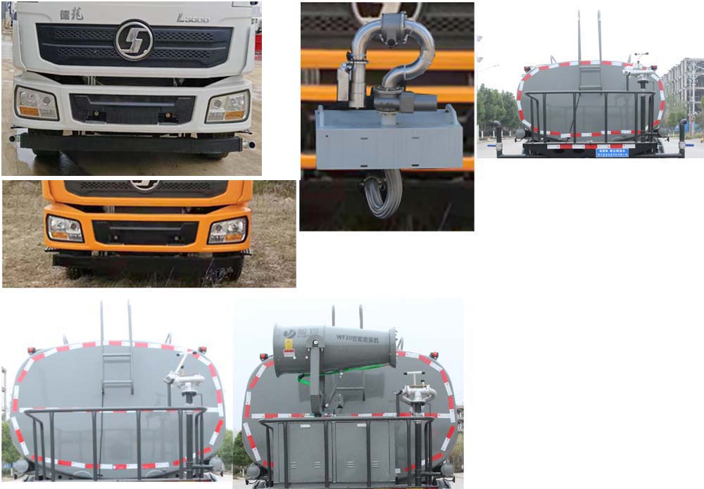 陜汽軒德x9灑水車,陜汽12方灑水車,國六陜汽灑水車,CLT5189GPSSX6B型綠化噴灑車,該車主要用于城鄉園林綠化噴灑作業;主要裝置為罐體及噴灑裝置.罐體總容量:11.2立方米,罐體有效容積:10.7立方米;罐體外形尺寸(×長軸×短軸)(mm):4000×2300×1540.ABS系統生產廠家及型號分別為:西安正昌電子股份有限公司(型號:ZQFB-V).側、后防護材料均為:Q235碳鋼,連接方式均為:螺栓連接,后部防護截面尺寸(mm):120×50,后部防護離地高度(mm):470.僅采用底盤4000mm軸距改裝.選裝前部不帶電子霧炮,選裝電子霧炮樣式.當前部不帶電子霧炮時,車輛長度7850mm,7600mm,無前伸;當前部選裝電子霧炮時,車輛長度8350mm,8100mm,前伸500mm.選裝后部大工作平臺.后軸僅采用鋼板彈簧懸架.