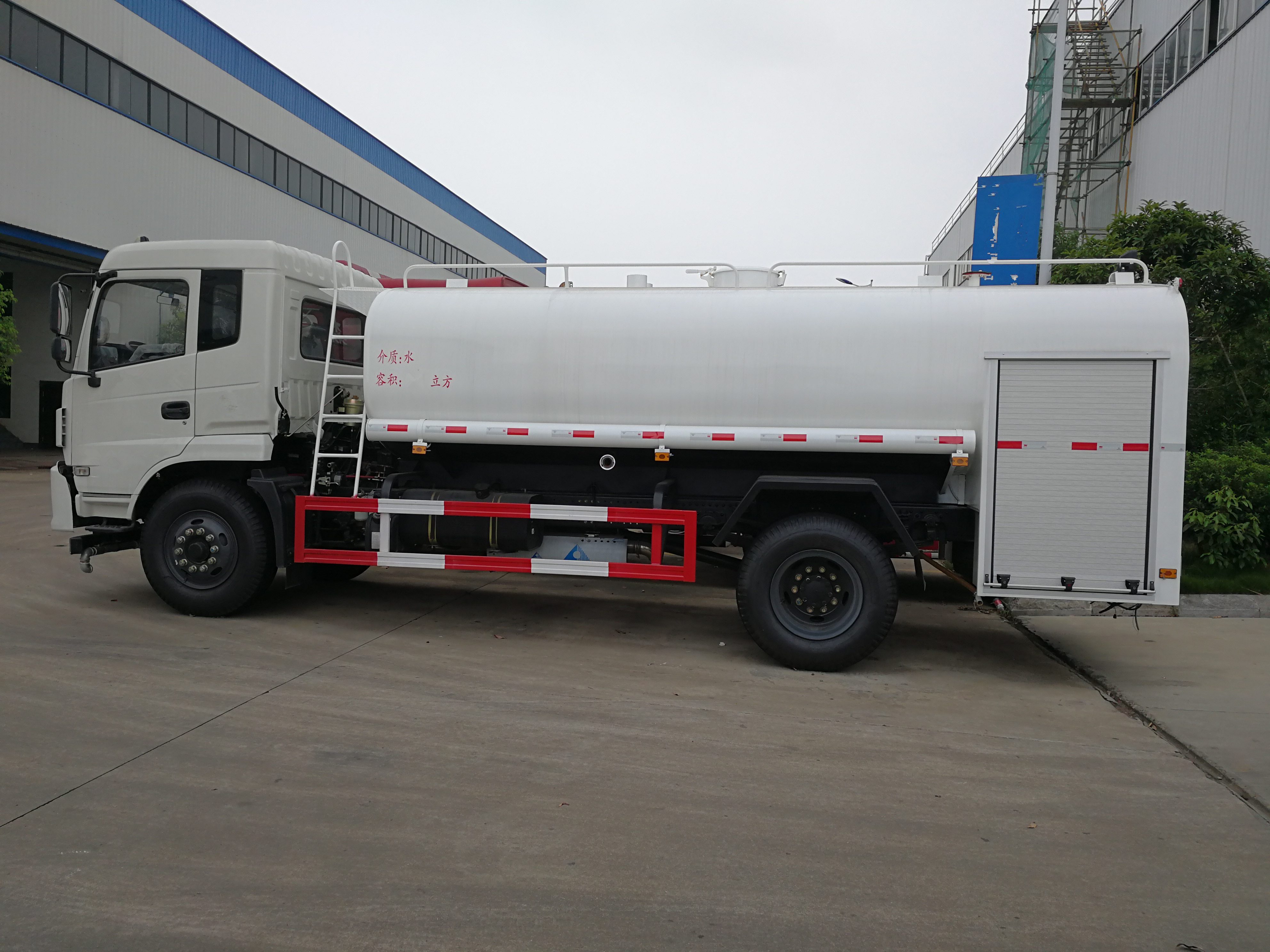 該車主要用于城鄉(xiāng)園林綠化噴灑;主要裝置為罐體及噴灑裝置;隨底盤選裝駕駛室,罐體總?cè)萘?/span>:11立方米;罐體有效容積:10.9立方米;罐體外形尺寸(長(zhǎng)×長(zhǎng)軸×短軸)(mm):3700×2400×1540;ABS控制器型號(hào)為CM4XL-4S/4M,ABS控制器生產(chǎn)企業(yè)為廣州瑞立科密汽車電子股份有限公司;側(cè)、后防護(hù)材料均為:Q235碳鋼,連接方式均為:螺栓連接,后部防護(hù)截面尺寸(mm):120×50,后部防護(hù)離地高度(mm):450.采用3950mm軸距.選裝電瓶,油箱出口位置,選裝擋泥板樣式。選裝側(cè)部及后部樣式時(shí),后部防護(hù)為專用裝置代替,離地高度為450mm。 |