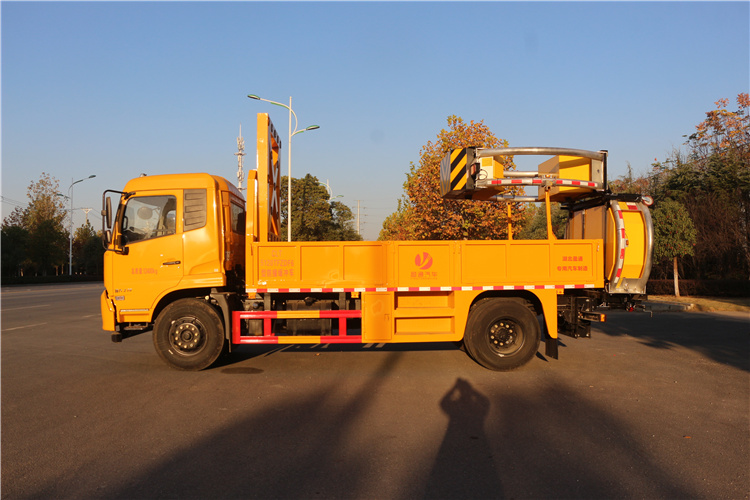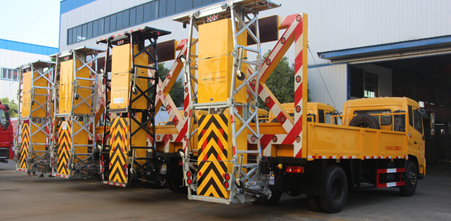 上裝配置:護(hù)箱:采用Q235國標(biāo)邊3mm底板花紋板4mm厚,箱體后部防撞包采用美國進(jìn)口T90型號,防撞緩沖吸能模塊主要由車載防撞緩沖墊和導(dǎo)向標(biāo)志架組成,充當(dāng)施工作業(yè)車輛后方的緩沖衛(wèi)士。如若發(fā)生追尾事故,能夠在肇事車輛和前方施工作業(yè)區(qū)域之間構(gòu)建一個緩沖區(qū)域,通過機具結(jié)構(gòu)變形吸收撞擊的能量,最大限度地降低被保護(hù)人員及設(shè)備遭到碰撞的幾率。高性能液壓系統(tǒng),可實現(xiàn)快速舉升和落下操作,方便設(shè)備運輸轉(zhuǎn)場,一鍵啟動功能,舉升和落下防撞裝置,當(dāng)防撞裝置未完全落下到工作位置或舉升到垂直運輸位置時,會有自動警告音提示。